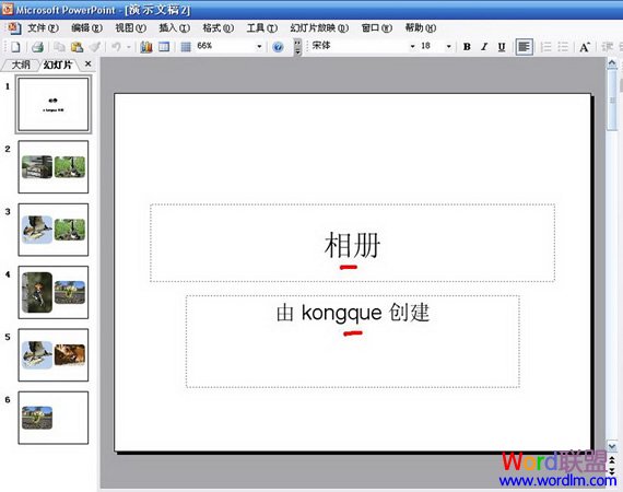 现在是科技时代,数码产品在不断升级,不断普及,现在连一般的手机都可以用来拍照片。但是拍出来的照片作用不大,只能说当作自拍或者是生活照,洗成照片的话也没什么必要,所以此时我们需要一个电子相册,来将这些生活中的照片全部放到相册中,等到需要的时候可以拿出来欣赏一下。如果您手中没有这方面的专门软件,用PowerPoint也能帮您轻松制作出漂亮的电子相册来。下面我以PowerPoint2003为例(其他版本请仿照此操作)给您介绍制作PPT电子相册的方法。