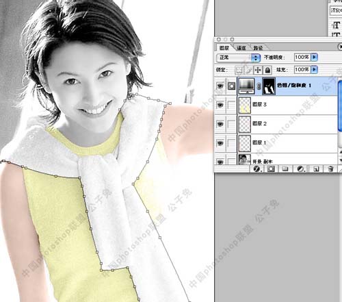 第五,上色大体思路我认为仍然是从整体到局部,再由局部到整体。比如这张照片。我们要先从整体出发,考虑好这个MM的环境,和她自身的特质。健康阳光,很有活动。这时我们就要为他设计色彩。就这张照片而言,我个人觉得应该以清新的浅色为主,淡黄,淡绿的搭配由此产生,在这幅图中,环境色很少,这时我们可以把主要精力放在人物上,而环境色只要能和人物衣服色搭配合适就行了。设定完总体的颜色。再进行实际的局部上色。中间的步骤下面会有一些截图,希望大家看了能有所领悟,具体的我不细说了。因为已经有很多这方面的教程了。最重要的一点是要细心。我用的方法是最笨的方法。就是一块块的用钢笔扣出来,头发部分用配合通道来扣。然后一个图层一个图层的上色。先填充一层基本色,然后再用喷笔上明暗调,上色的图层所用的图层模式为[颜色]。当这些都进行完以后。大体上颜色就上完了。有些盟友这时就交稿了。慢着。这还没完。因为我们一部分一部分的上色。最后的成品肯定不是非常的自然。这是肯定的。所以最后还要有一步,在最顶层加一个色彩整体调整层。我的习惯是用[曲线]调整层。“便宜量又足,曲线,我一直用它??!”。这时才算是完工了。总之知识是死的,人是活的,不要死背教程。 |
