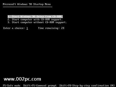 第一部分∶用软盘启动进入DOS 一、设置软驱为第一启动盘。 当电脑刚刚启动出现如下 图1 时 按下“DEL”键或“Delete”键不放手,直到出现 图2 如下 即进入了系统基础输入输出CMOS设置,在这里按“向下或向上”箭头键选择“Advanced BIOS Features”项。如下图3 然后按“Enter”回车键,即进入“Advanced BIOS Features”项设置,如下图4 这里的“First Boot Device”项为设置第一启动盘项,“Second Boot Device”项为设置第二启动盘项,“Third Boot Device”项为设置第三启动盘项。 在这里我们将“First Boot Device”项设置为“Floppy”即软盘,"cdrom"就是光盘启动,现在安装系统一般都用光盘启动,“Second Boot Device”项设置为“HDD-0”即默认硬盘。设置方法∶选“First Boot Device”项按“Enter”回车键,出现如下 图5 所示 (上图中Floppy--软盘、HDD-0--硬盘、CDROM--光盘)然后按“向上或向下”箭头键,选择 “Floppy”项,接着按“Enter”回车键,即完成该项设置并重新返回了图4画面,你可以看到该项设置已经改变了。用同样的方法设置“Second Boot Device”项为“HDD-0”。设置完成后按“Esc”键退出到(图1)画面,然后按“向右、向下”键选“Save & Exit Setup”项,该项意思(保存设置并退出),如下图6(www.002pc.com) 选“Save & Exit Setup”项后按“Enter”回车键即出现如下图7 按 “Y”键回车,系统会保存认置并重新启动。到这里为止,系统第一启动盘项设置完成,以后只要扦入98或Me启动盘到软盘驱动器(A盘),启动电脑即可以启动到DOS系统,不用再次设置。建议在安装完系统后,如果不需要经常转到DOS系统时,将第一启动盘项设置成“HDD-0”。下面将介绍启动的过程。 二、启动到DOS系统的过程 将98或Me启动盘扦入软盘驱动器,然后启动或重新启动电脑至出现如下图8 图8的启动选单中;第一项为∶启动时加载光驱驱动程序,第二项为∶启动时不加载光驱驱动程序,第三项为∶启动帮助。如果你不选择,系统在30秒后默认启动第一项。用“向下或向上”箭头选择键选择第二项“Start conputer without CD-ROM tupport”项即不加载光驱驱动程序项。然后回车。即可顺利启动到纯DOS系统。将出现如下图9的画面,这时已完全进入。 恭喜你!纯DOS系统启动成功。 提示∶用启动盘启动进入DOS系统时,用加载光驱驱动程序模式下启动,光驱的盘符比实际盘符向后推迟一个盘符,如果你的光驱在Windows系统中是F盘,即在这里变成G盘;如果你的光驱在Windows系统中是G盘,即在这里变成H盘;依此类推。如果你在启动DOS时选择加载光驱驱动程序即可在图9所示的画面中的倒数第三行英文中显示出光驱所用的盘符。如果用启动盘启动进入DOS系统时,不加载光驱驱动程序模式下启动,即进入DOS下不能读取光驱中的内容。 第二部分∶用98或Me安装光盘启动进入DOS 一、设置光驱为第一启动盘。(参考第一部分∶设置软驱为第一启动盘)这里不多说了。 二、用Windows 98安装光盘启动进入DOS系统 将光驱为第一启动盘后,把Windows 98安装光盘放入光驱中,重新启动电脑至出现如下图10 上图中提供三项选择。如果不进行选择,在30秒后自动进入第一项。三项选择分别为∶ 第一项“1. Start Windows 98 Setup from CD-ROM”(从光盘启动安装Windows 98系统) 第二项“2. Start computer without CD-ROM support”(加载光驱驱动程序进入DOS) 第三项“3. Start computer without CD-ROM support”(不加载光驱驱动程序进入DOS) 在这里要进入纯DOS就选第三项(选第二项也可进DOS),回车后出现如下图11所示 三、用Windows Me安装光盘启动进入DOS系统 将光驱为第一启动盘后,把Windows Me安装光盘放入光驱中,重新启动电脑至出现如下图12 选择第三项或第二项后回车即可进入DOS。